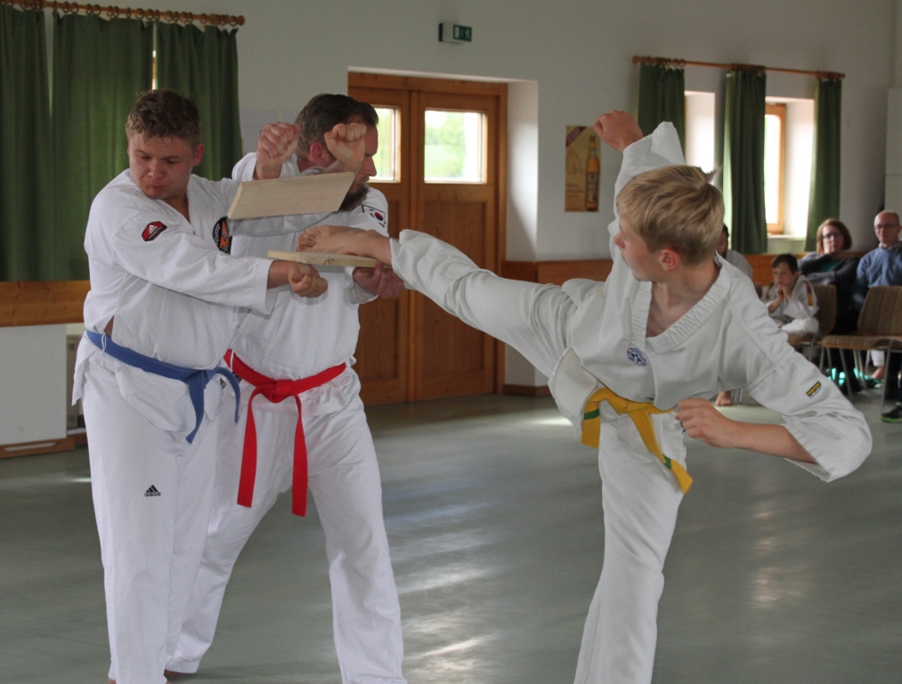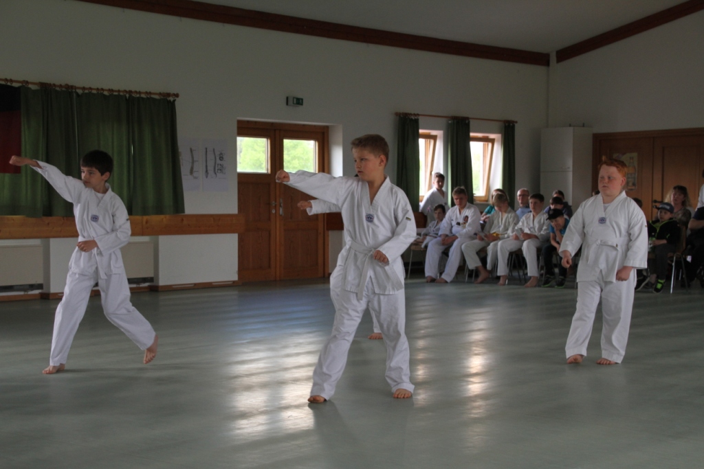 In der Trainingshalle des TSV Velden konnten die Teilnehmer zeigen, was sie gelernt hatten. Viel Freude macht uns die hohe Zahl an Schülern, die zum ersten Mal eine Prüfung absolvierten. Die vorgeführten Techniken und Fähigkeiten versprechen viel für die weitere Zukunft. Wir freuen uns auf das weitere Training!