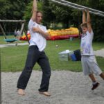 Vollgepackt mit Spiel, Sport und Spaß, mit Grundtraining und speziellen Einheiten, mit Core-Training und Metal Yoga, mit Bogenschießen und Schwertkampf, mit Ringen, Bodenkampf und Kali, Arnis, Escrima, mit gutem Essen und viel viel Trinken, mit Kampf in der Hüpfburg, Hyong auf der Wiese und Selbstverteidigung in allen Lebenslagen, mit Wasserbombenschlachten und Waffentraining, mit Eisessen und Marshmallowgrillen brachten beide Tage unglaublich viel Spaß und haben uns körperlich komplett gefordert.
