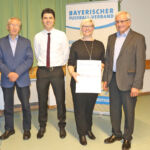 Ehrenamtsbeauftragter Alfons Zierer, BLSV-Kreisvorsitzender Tobias Mürdter und TSV-Vorstand Martin Schuster dankten Evi Zehetbauer für ihr langjähriges Engagement bei den Bergfreunden und dem TSV mit dem „Ehrenamtspreis 2018“.